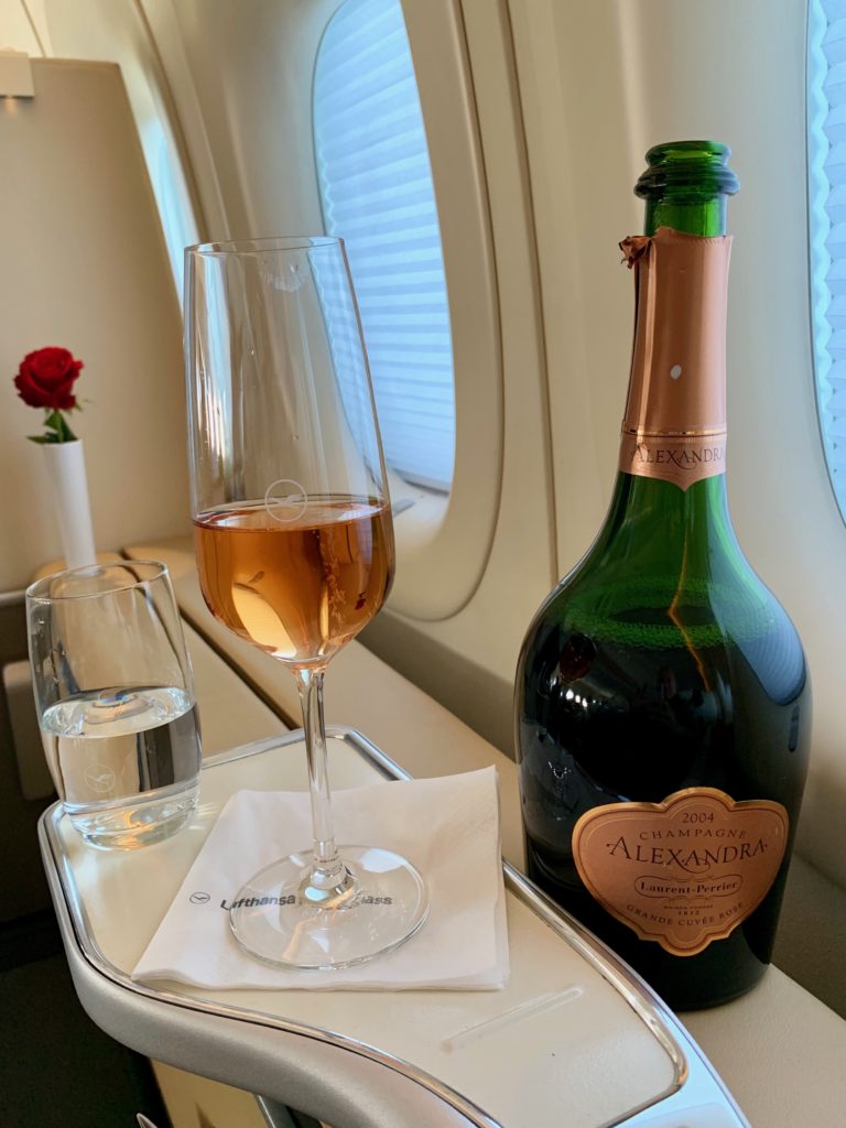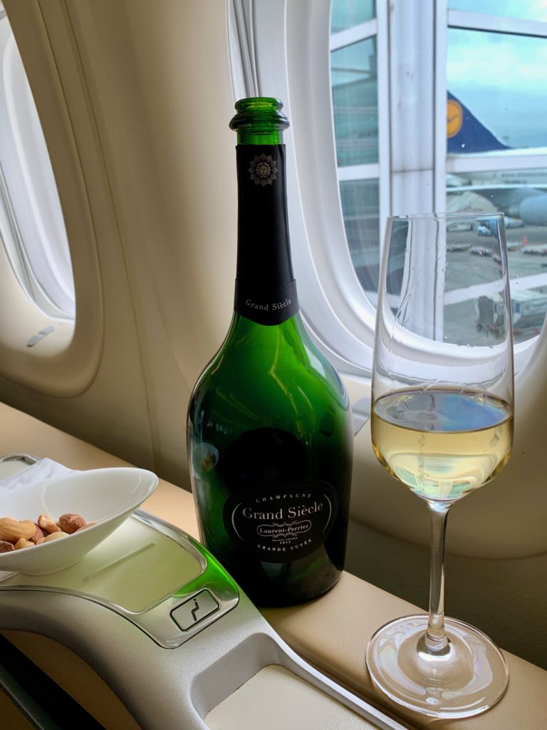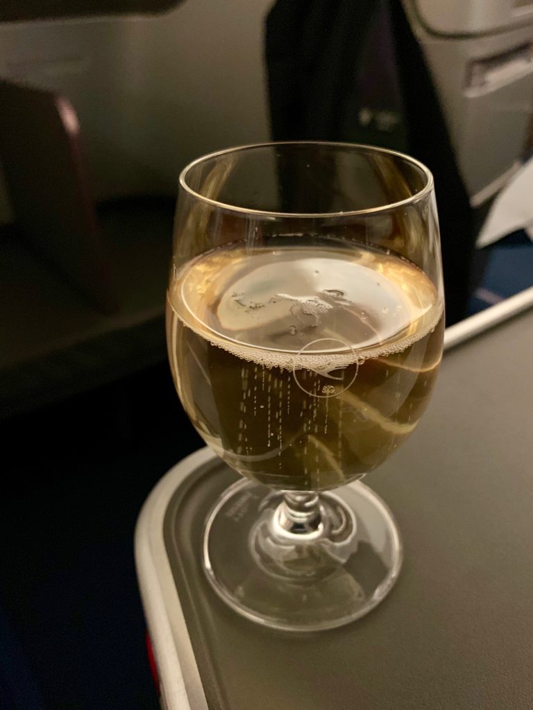 I wasn’t counting on it, so when boarding started I joined the mass rush to the plane…and enjoyed a glass of bubbles while everyone else tried to part the sea and get on board as quickly as possible.
