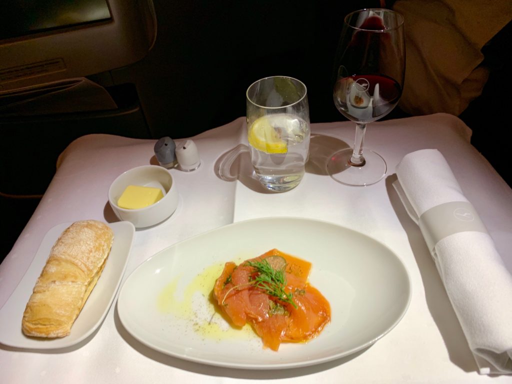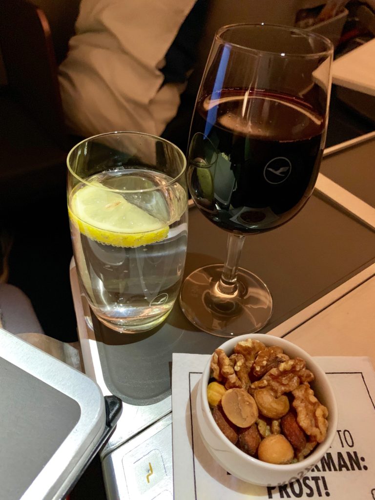 We had a great crew tonight, and they worked on being quick with service so people could sleep while at the same time being professional. It’s a nice balance. Also, I think Lufthansa might be the only airline I know who puts macadamia nuts in the business class mixed nuts (but why are they always over-roasted in business but perfect in first?!) along with walnuts.