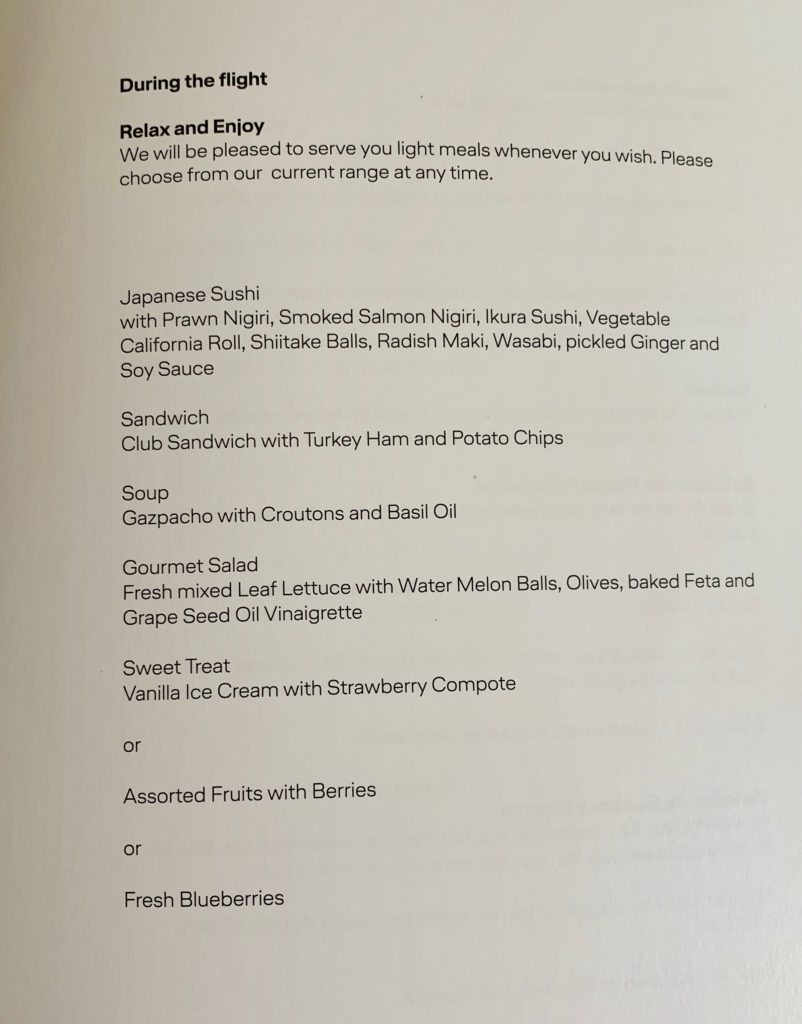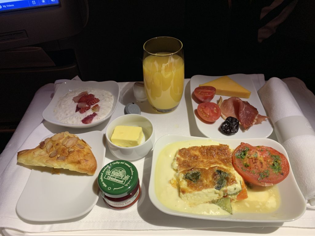 After dinner, I still wasn’t tired, but after a few more hours did manage to fall asleep and get around four hours of sleep in flight. Woke up to breakfast being served, and figured I might as well try it. I went with the roasted vegetable frittata, but it was very meh and I only had a few bites. the deli plate and muesli were more than enough food, however.