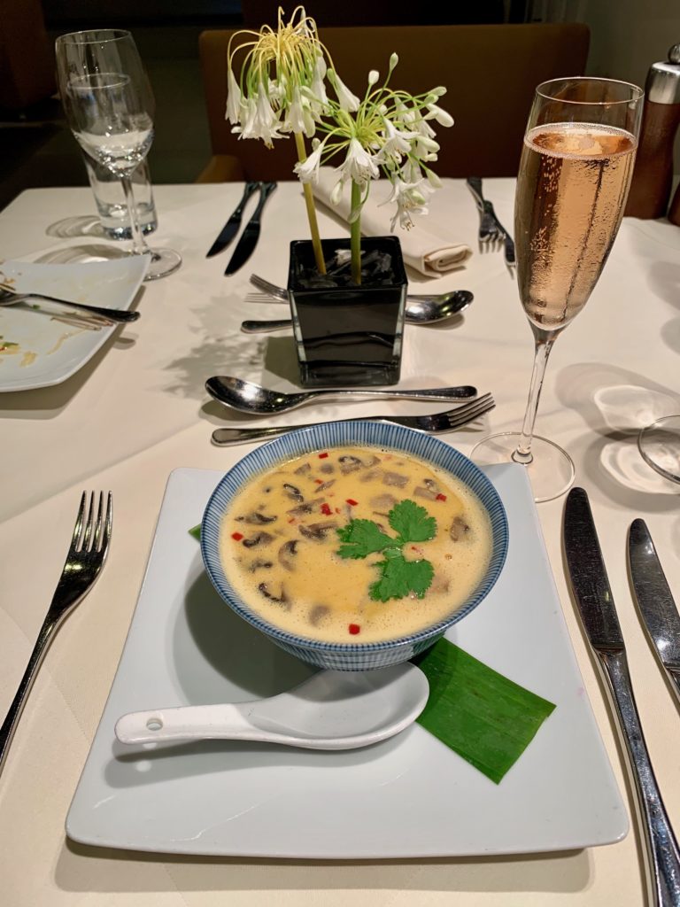 I had to order it because, I couldn’t imagine Tom Kha Gai soup in a lounge in Germany could be good. I was right. It was outstanding…and amazingly spicy just as I requested!