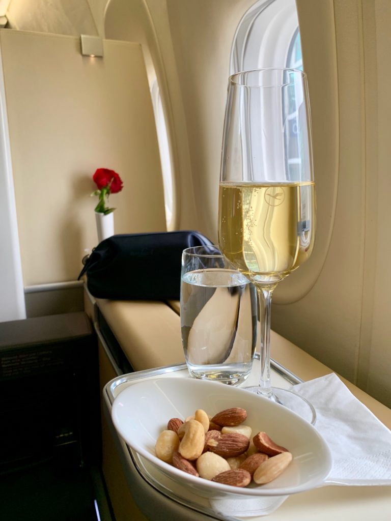 Pre-departure mixed nuts…odd…usually first on Lufthansa is macadamia nuts only, but today included almonds and cashews. (…and the macadamia nuts were perfect as always in first…not over toasted!)