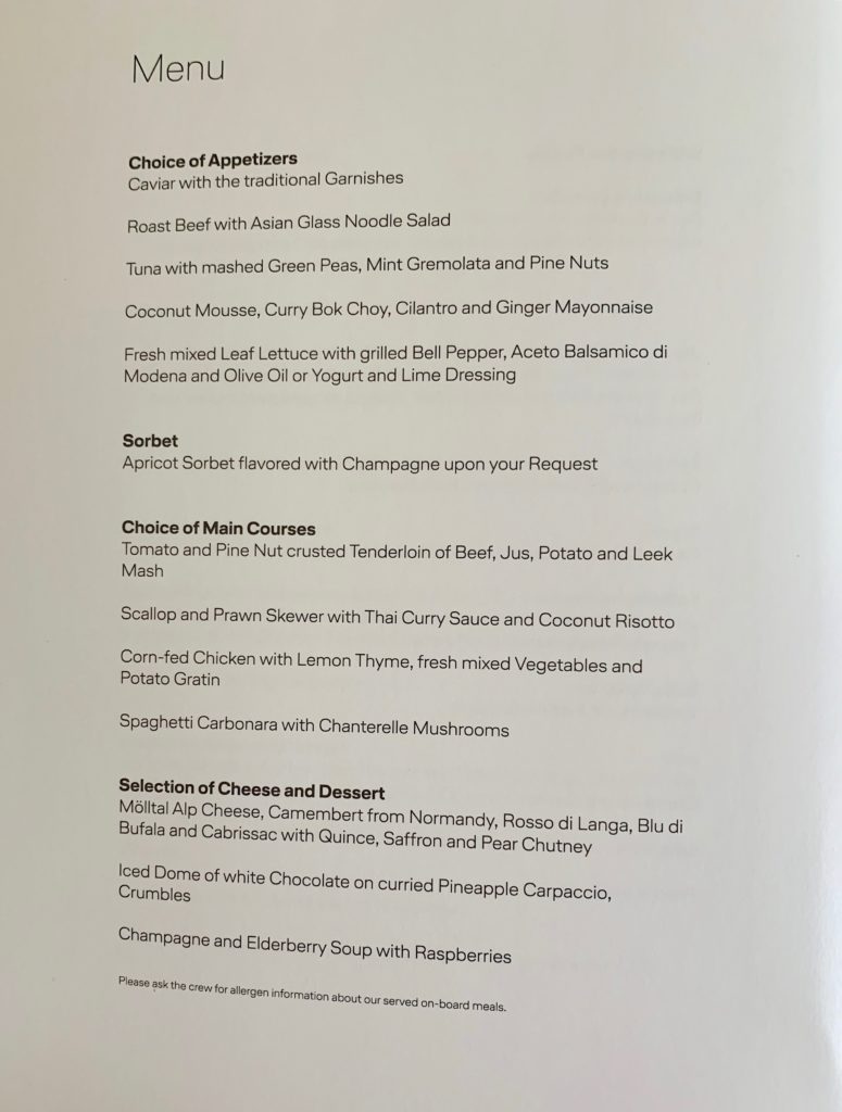 Lufthansa first’s always-delicious cheese cart. It’s hard to pick a winner in this category between Emirates, SWISS, and Lufthansa. Now that would be an amazing trip….