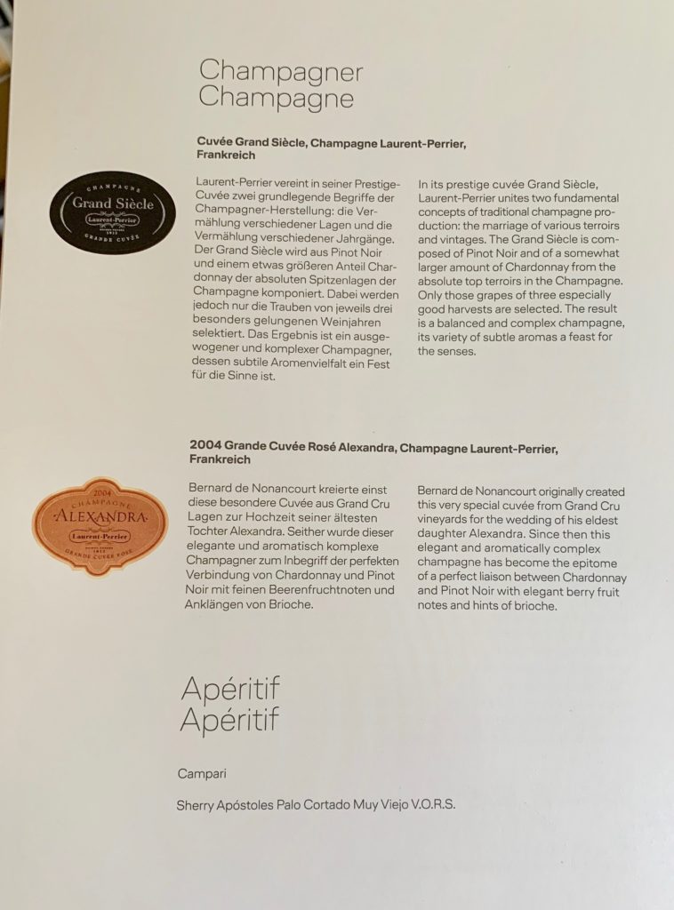 Once airborne, I noticed there was a second champagne on offer as well (but only one bottle) and the purser was a total character “I call her Alex, because she is beautiful. Perhaps you’d like to take a picture with her?”