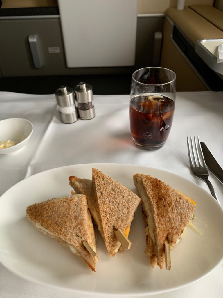 Couldn’t resist trying the “club sandwich” which was incredibly soggy and disappointing. Not often I’m let down in Lufthansa First, but this one was a huge miss by a mile.