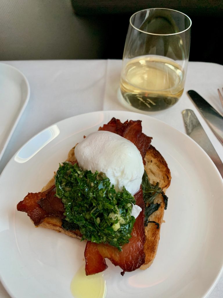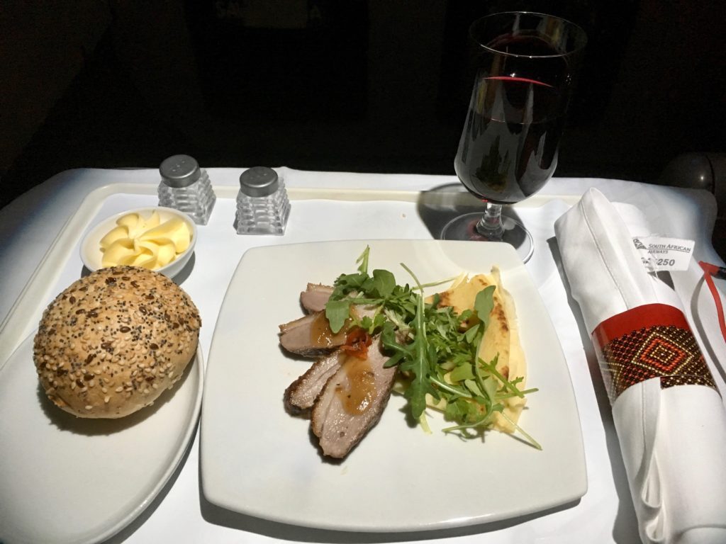 I don’t do shellfish on a plane. Ever. One too many bouts of food-borne illness, but I decided to take one for the team since I do love me some scallops and lobster…and oh, look, duck too! How can I say no! It was pretty darn tasty…