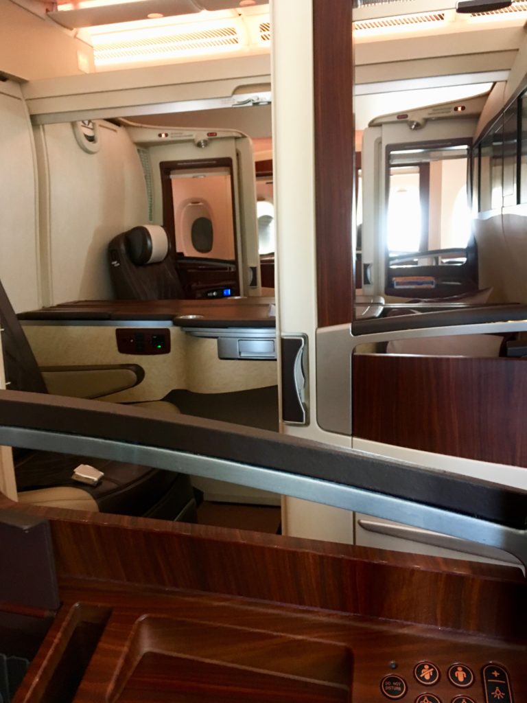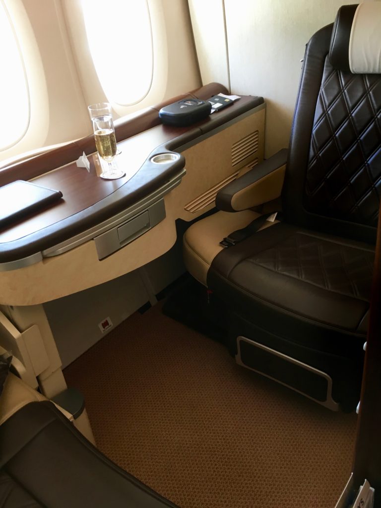 This wasn’t my first flight in Thai first on the 747, and the seat was pretty much as I remembered. Reasonably private and comfortable, but very open – reminds me a lot of the Lufthansa First seat, but with a bit more colour: