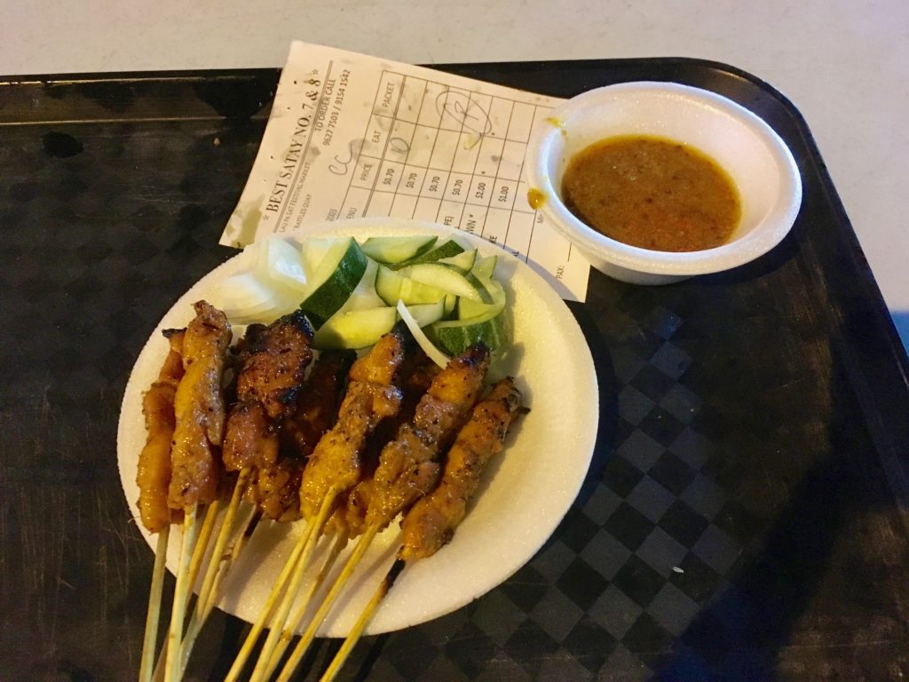Chicken satay, of course with a splash of Johnny Walker Blue on the side.