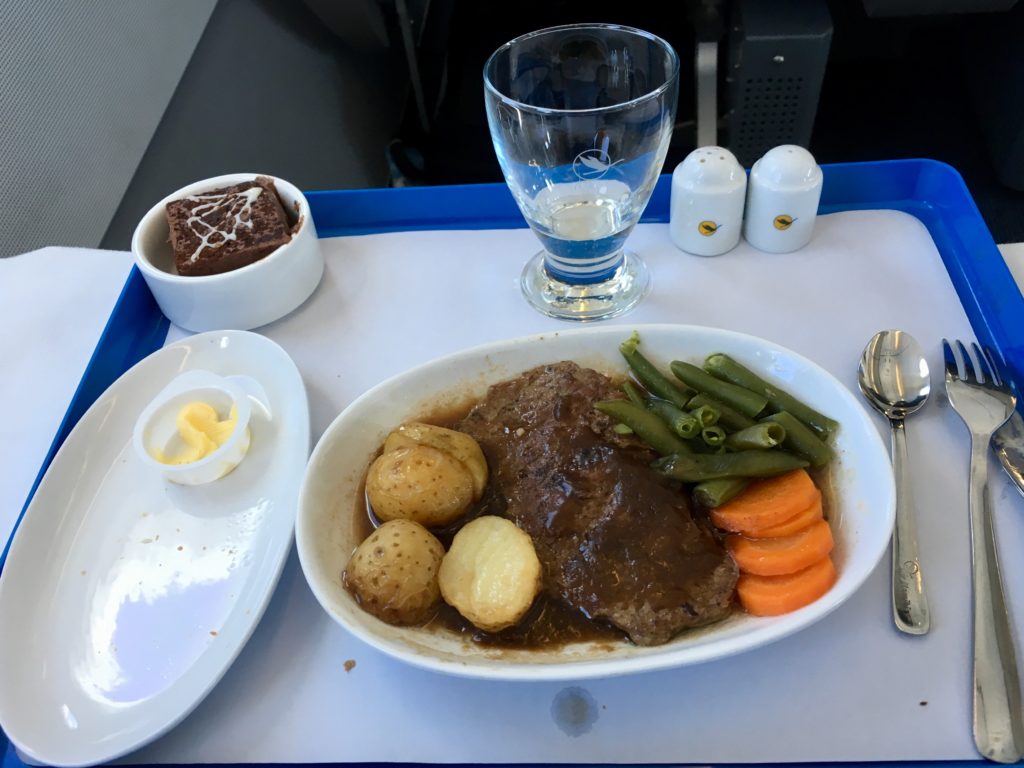 Beef, vegetarian, or fish. I went with the beef, and it was straight out of the United Airlines short rib kitchen. Tasted the same, looked the same, and once again, repeat after me: like grandma’s cooking. Now, remember this meal…we’re going to be coming back to it later…