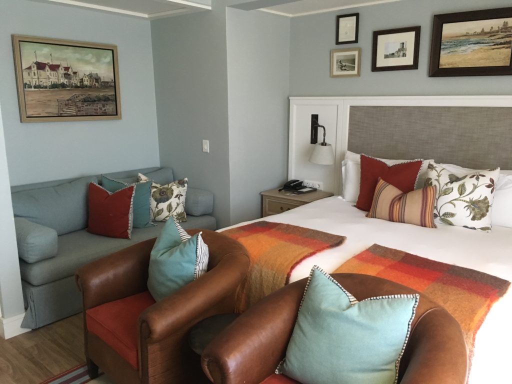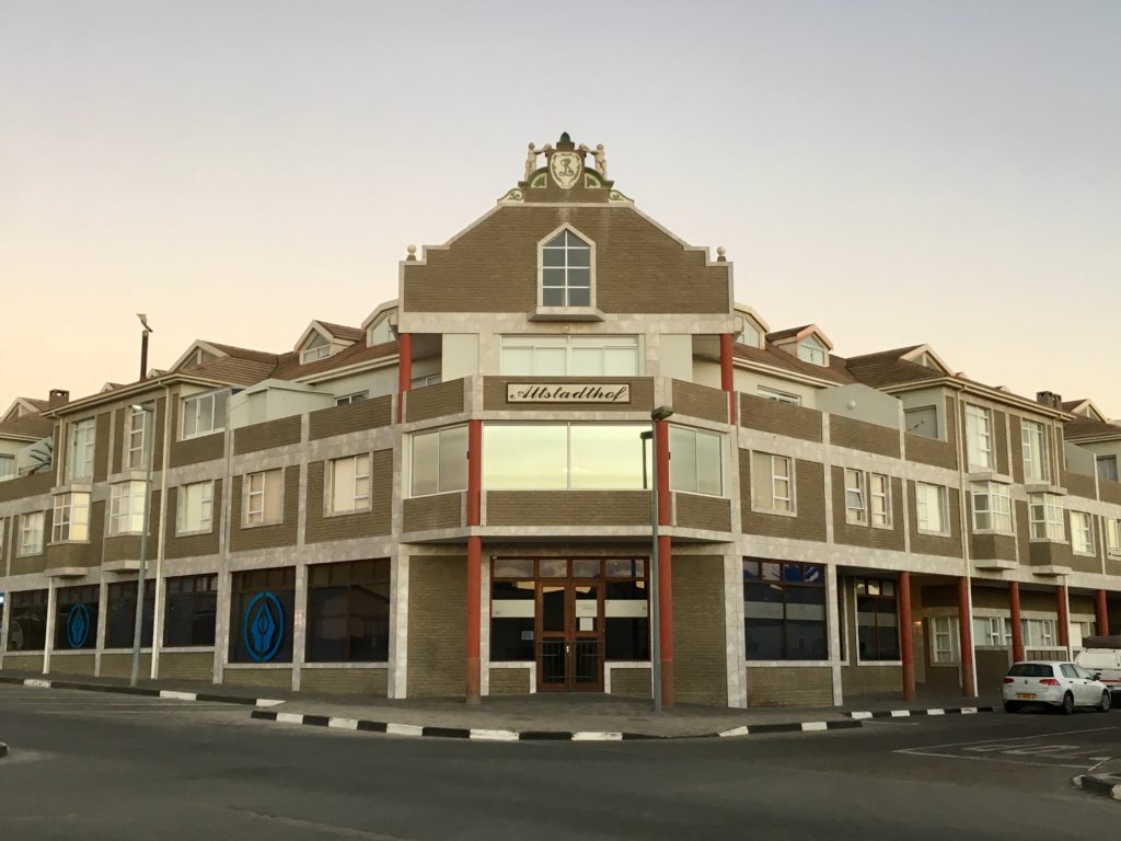Drive into Swakopmund was just under an hour, and finally I found my hotel the Swakopmund Plaza Hotel. I had booked the larger “family room” since it was only slightly more, and it still wasn’t very large, so I was glad I’d spent the little bit extra: