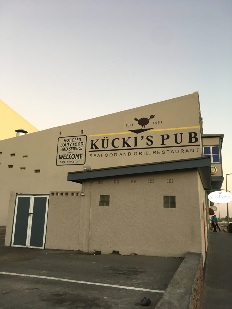 Kücki’s Pub, location of tonight’s dinner. First thing that struck me: the staff switching back and forth between Afrikaans and German, with English clearly the third language. I actually didn’t know before this trip that more Namibians speak Afrikaans as a first language than English.
