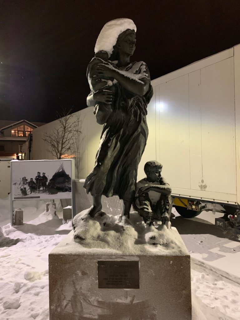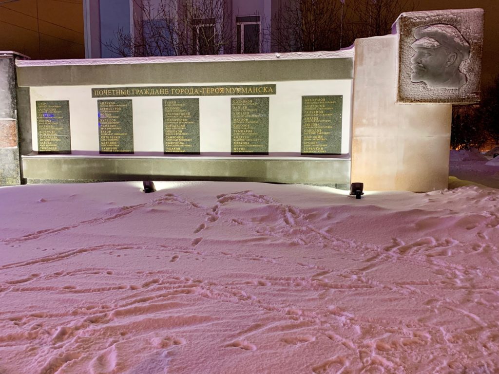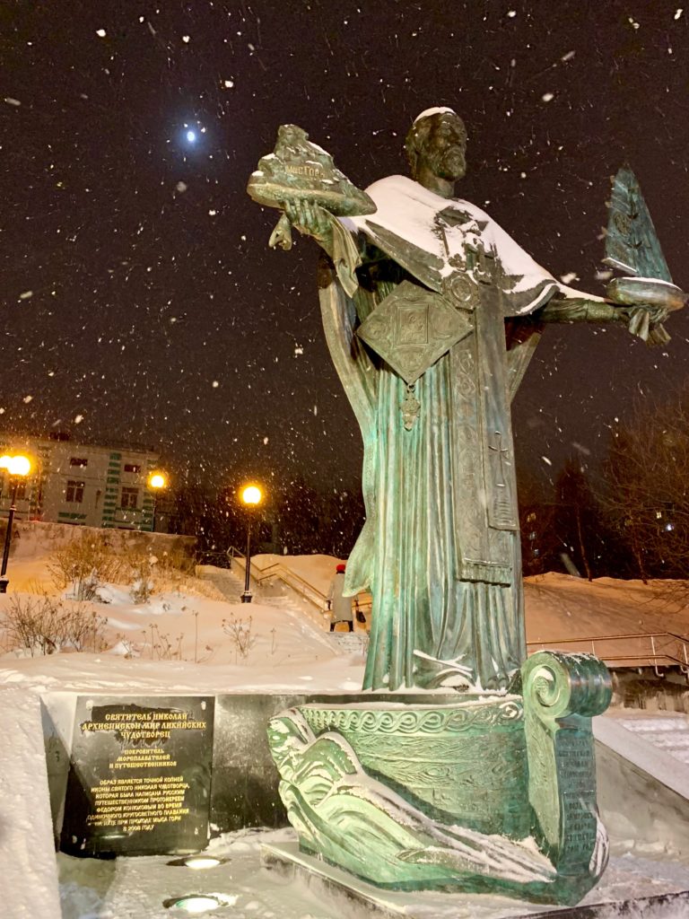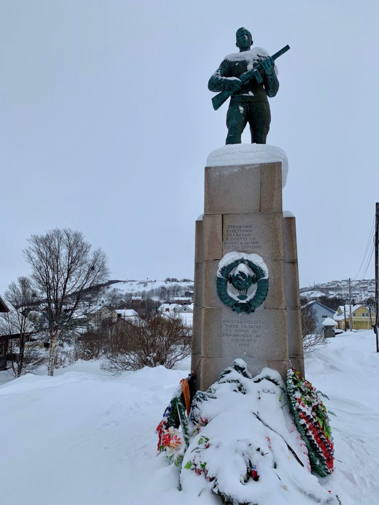 All that was left was a nice snowy walk back to the hotel, past the monument to the Hero City of Murmansk…complete with Lenin: