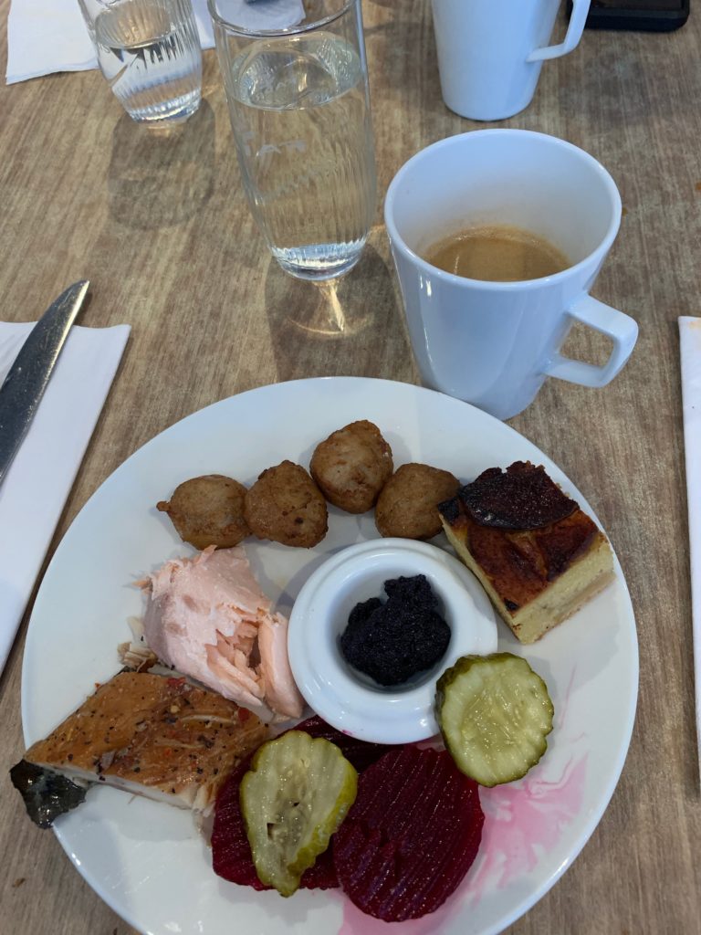 The buffet seemed to be closer to Russian than Norwegian, with caviar, beets, pickles, and lots of smoked fish that could have been at home in either country. Not exactly what I expected, but a delicious wake-up call that we were about to cross the most northern border in the world!