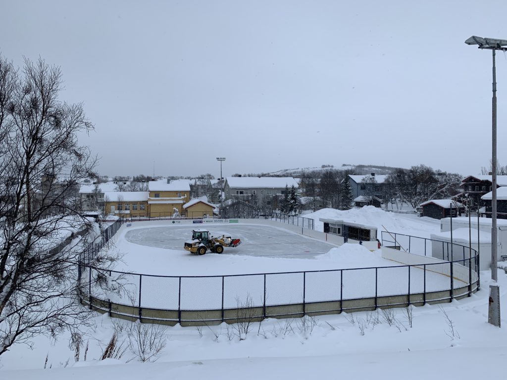 Off on the walk, we walked by the ice rink, which was being cleared of around 10-12cm of snow overnight. I was majorly bummed out that we would miss the tournament later in the day.