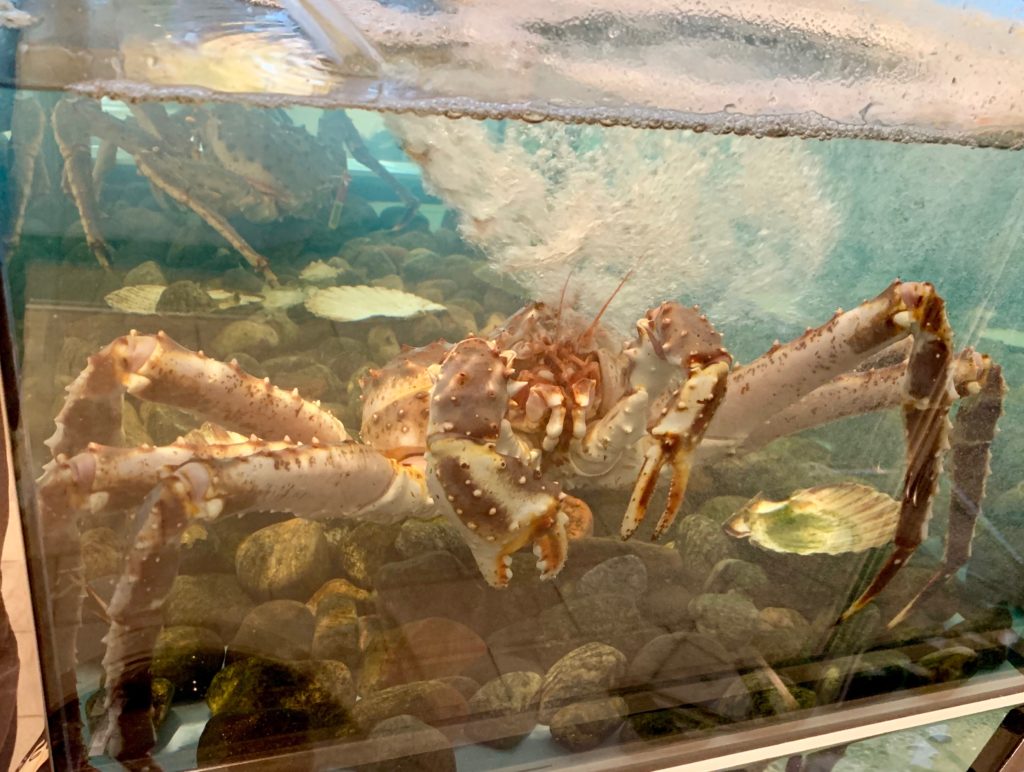 Back to the hotel to check out and wait for our bus, and we still had about 90 minutes to kill. Kirkenes is famous for its king crab, and there was a tank in the lobby for the restaurant. I can’t decide if this guy looked scary or delicious…