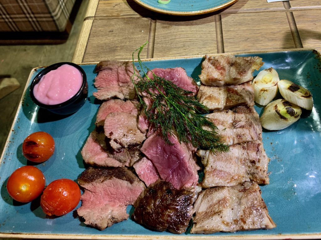 Next up was the grilled meat platter with venison, marbled roast beef, pork neck, and some sort of arctic berry sauce…again…delicious.