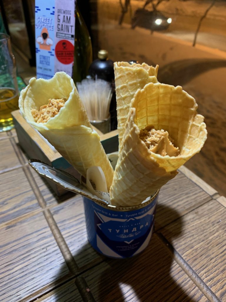 Couldn’t resist desert, which was the house specialty of boiled condensed milk served in “wafer tubules.” Extremely sweet and caramelly, but again…delicious.