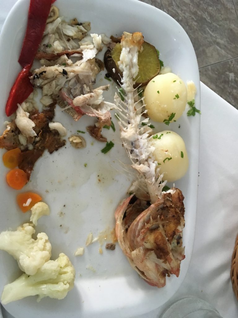 “Meat or fish” were the option. FAR from the most appetizing looking meal I’ve ever gotten, and it was all Saran wrapped…to seal in freshness? I did find it odd that whenever I asked for sparkling water, she would bring me a fresh bottle and glass each time.