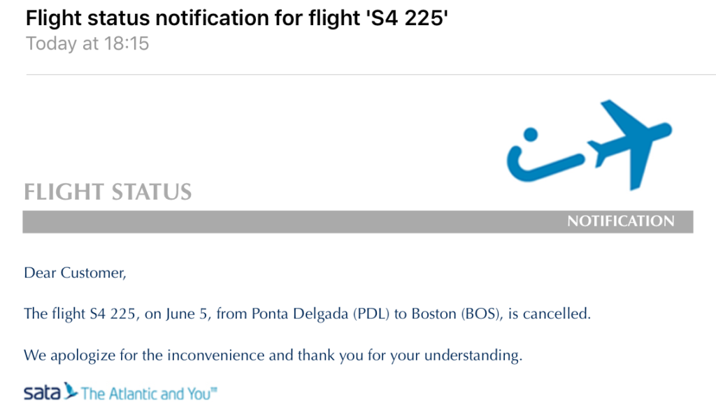 My original flight had canceled. All 150+ people booked on it would be stranded in Ponta Delgada overnight, and both flights to Boston the next day were already booked completely full. I’ve never been happier that I paid the extra to be in business class!