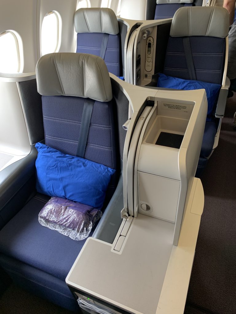 Boarding was a bit of a scrum with everyone rushing the gate the minute they started boarding, and my first impression of the seat was pretty good. Reasonably private, lots of space, and I would be happy with this seat on a 10 hour flight, not to mention a regional flight of under three hours! Ian had the seat behind me, and off to Hong Kong we went!