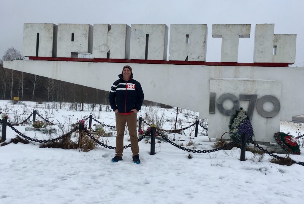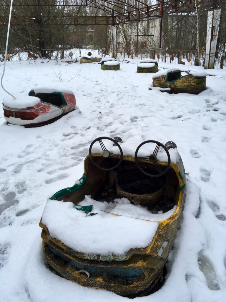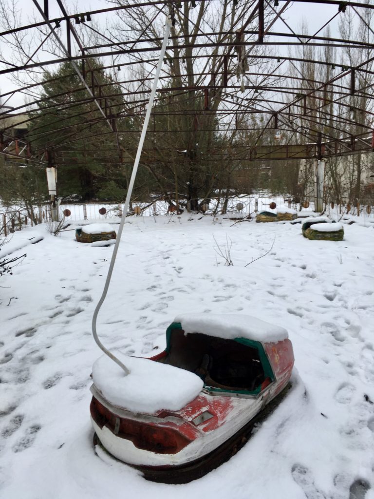 Then onto Chernobyl itself, where posing with the town sign is practically obligatory. Note there was no lack of snow at all to make everything otherworldly: