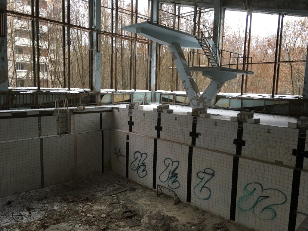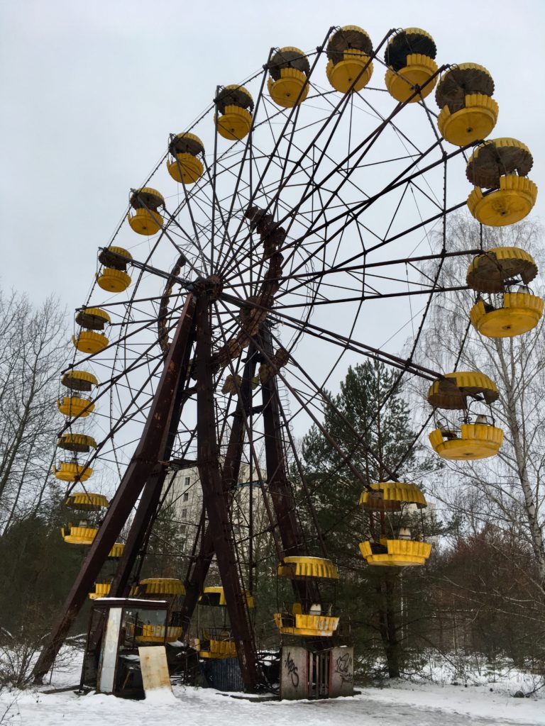 Town sign for the town of Pripyat, near the reactor, where most plant workers lived. Pripyat is actually closer to the reactor than the town of Chernobyl. Not sure why it wasn’t called the Pripyat Nuclear Power Plant…