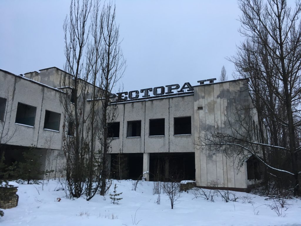 Next up, the town square in Pripyat, complete with abandoned restaurant: