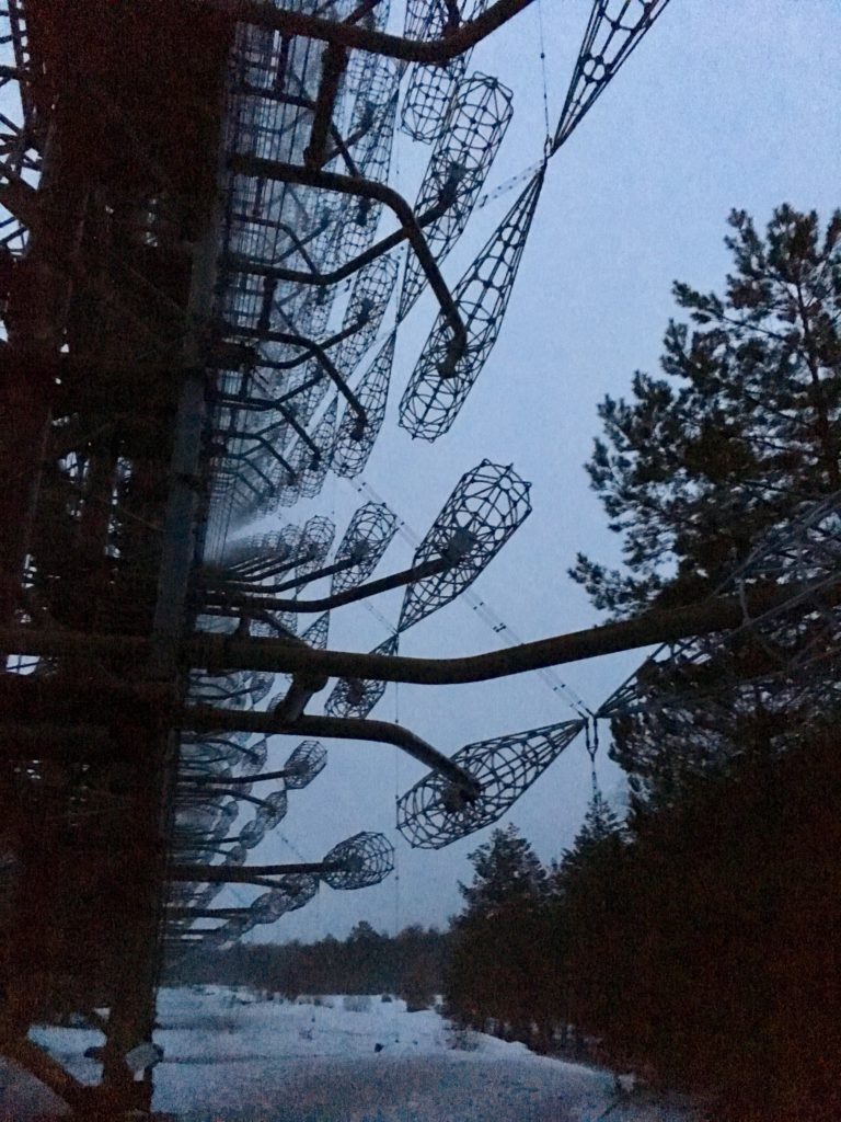 One final stop as the sun was setting was the DUGA radar station, also known as the “Russian Woodpecker” for the pecking noise it made over shortwave radio bands. I can’t describe the technology well, but Wikipedia has a great explanation of what the DUGA was. One thing it certainly was was massive: