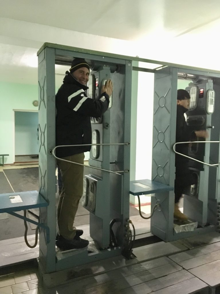 After that, it was completely dark, and time to head out of the exclusion zone. To get out, we had to pass through two separate radiation detectors, one at the 10km marker and another at the 30km edge of the exclusion zone. Here I am being scanned. If you pass, the gate would automatically open for you. Supposedly the detector at the 10km marker isn’t very sensitive, but the 30km one is since that is where you’re “free” from the zone: