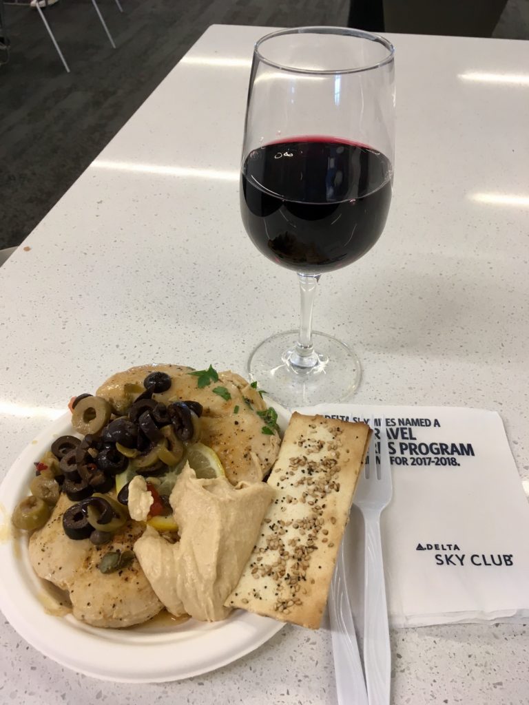 The Delta Skyclub, unfortunately, is one of the more dismal ones I’ve encountered. It’s in the basement at tarmac-level (ie, below boarding/jetbridge level) and was pretty small and cramped. Almost every seat was taken, and it only thinned out a slight bit in the time we were there. A glass of respectable Carmenere and some empanadas and nuts were marginal at best…but it wasn’t terrible either. Adequate, but nothing I’d ever go out of my way to spend time in.