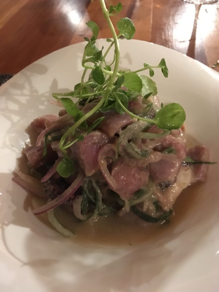 I ordered the hockey puck as a main course…I mean grilled chicken…which would have been a terrible miss if not for three things: (1) lots of protein (2) the goat cheese sauce, and (3) the fact I was starving. The salad was also pretty terrible, and the lettuce tasted funny. The mozzarella, zucchini, and basic starter was just odd when there was already a salad on the tray, and a cheesy main course. Overall, a pretty disappointing meal.