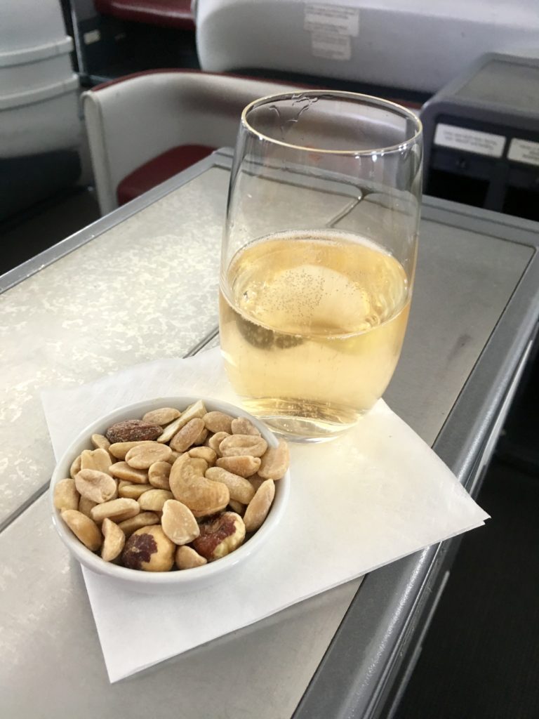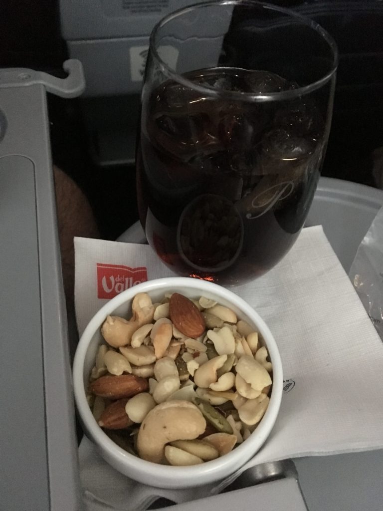 About an hour before landing, we were also offered a snack of mixed nuts. Unfortunately, it was mostly peanuts. 🙁