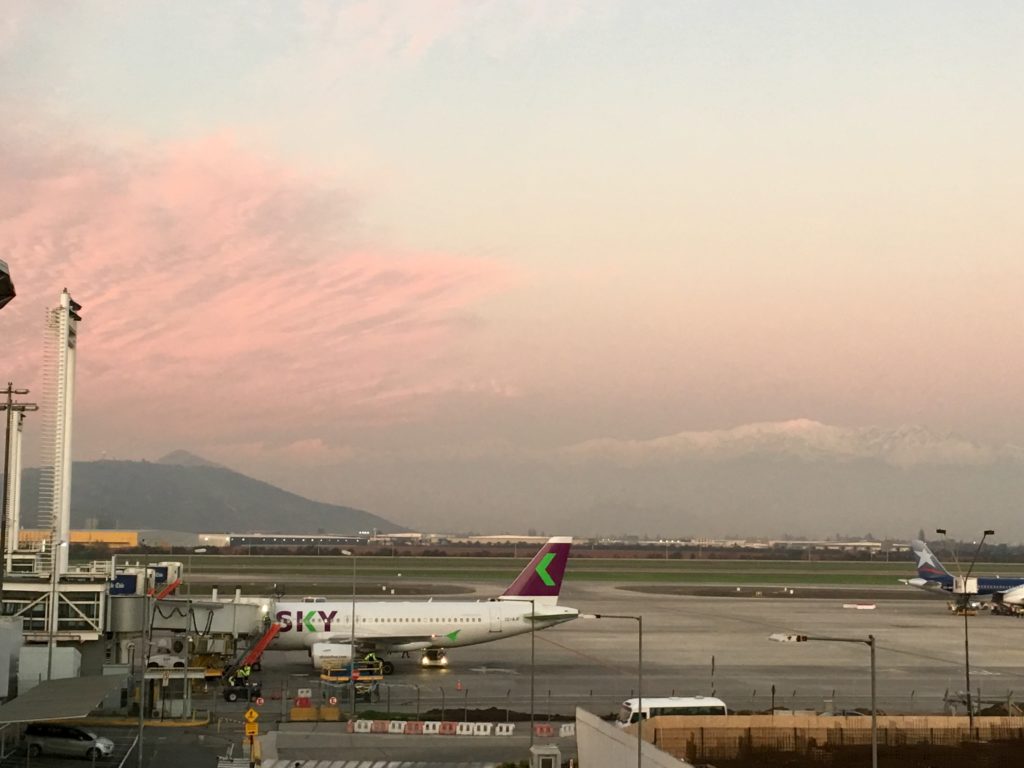 Uber to the airport was much shorter than the two hour nightmare we endured in the opposite direction, and we approached the terminal just as a nice rose coloured sunset over the field was happening: