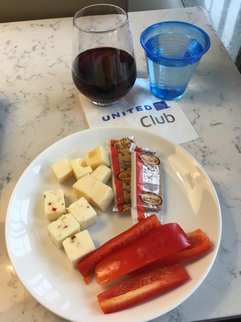 Quick stop by the United Club for some water and a glass of whine, before boarding the last flight of the night, which I prayed would be on time.