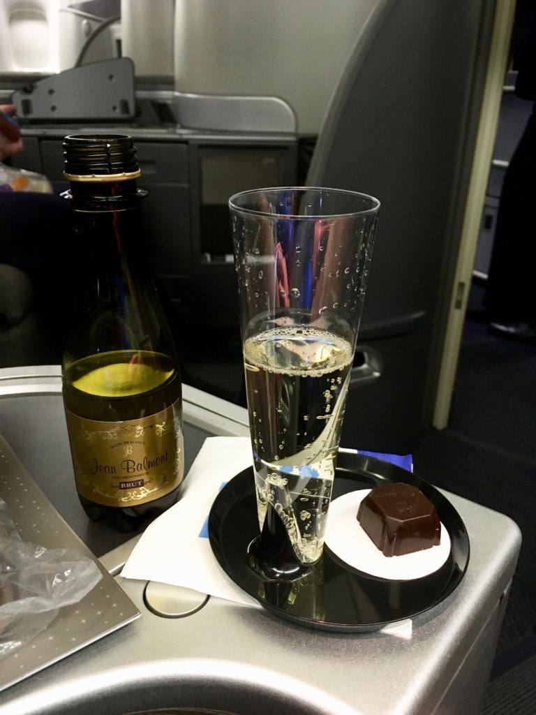 Nothing says first class like welcome aboard sparking wine in a plastic bottle served in a plastic flute. I know some people actually consider this aspect of “Polaris” charming, but to me it’s charming in the same way that a Costco hotdog is better than cooking a hotdog at home. You can put cheap lipstick on a pig, but this says “no class” way more than “first class.”