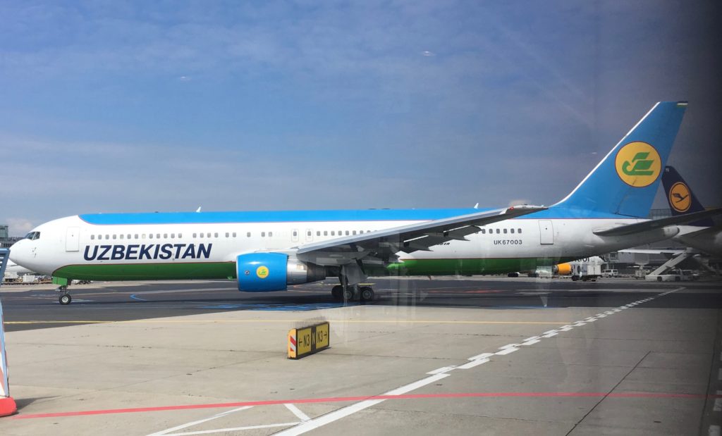 On the taxi in Frankfurt, an Uzbekistan 767 which I am very excited to be booked on in a couple of weeks:
