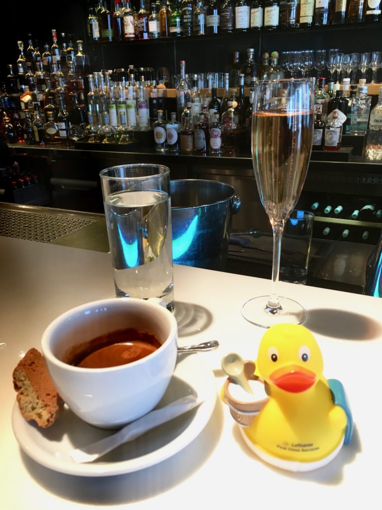 Got to the Global First lounge, which was absolutely packed. It’s my understanding they pretty much let all Global Services members in business class in now, and it was the most crowded I’ve ever seen it. High quality self-service bubbles as always, but what passes for cheese these days is absolutely pathetic. The quality of this club is now firmly below the Chicago Polaris lounge. Next time, I’ll actually go to the Lufthansa Senator Lounge in the B Terminal.