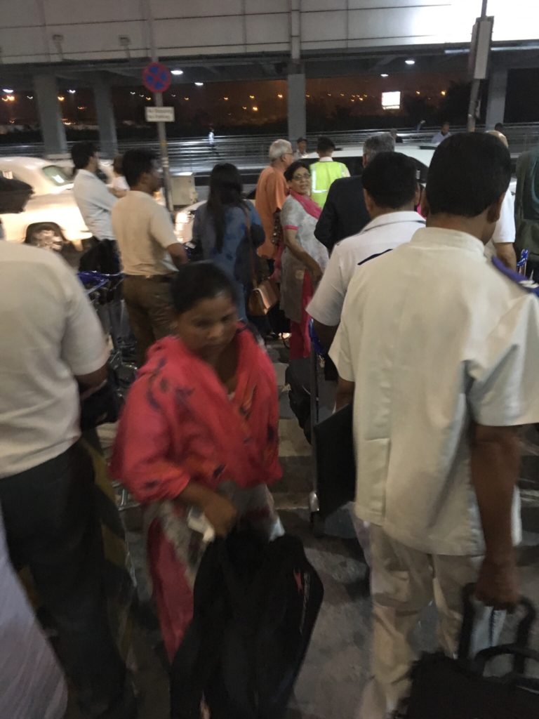 Fortunately, there was no line at all at immigration tonight, and I was through in just a few minutes. I had pre-arranged a driver with my hotel (always a great idea in Delhi given the general chaos that is the arrivals area) and soon we were on the way to the car. Hit the 1000 degrees and 1000 percent humidity outside and wilted as usual, as we fought our way through the crowds to the parked car:
