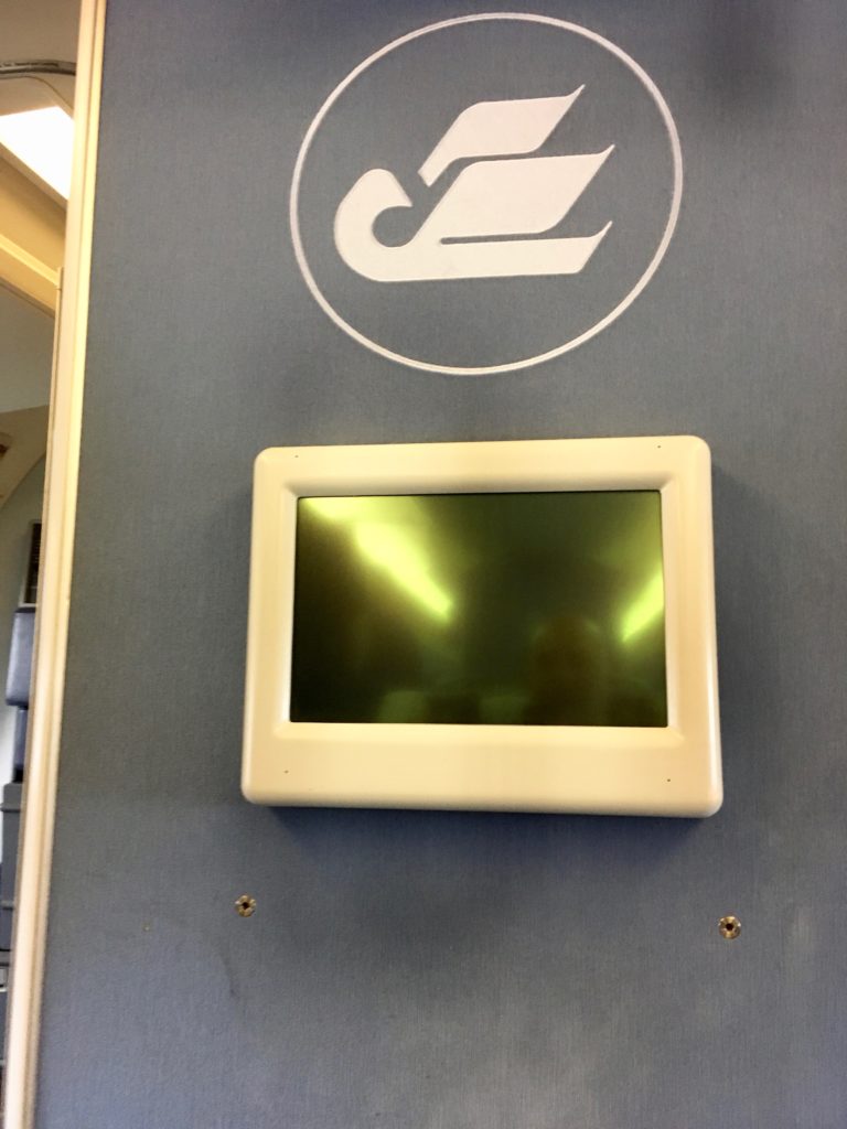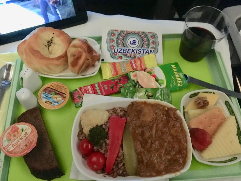 First row centre bulkhead. Flight attendant saw me take this pic, and very sternly wagged her finger at me. Apparently, Uzbekistan Airways still has an incredibly strict no photos policy. How very….quaint.