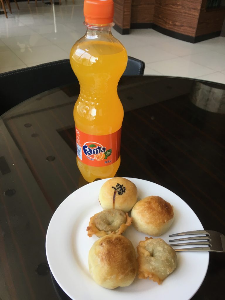 Snacks. I wasn’t thrilled at first, but the small meat-stuffed pastries were kind of addicting, especially after popping them in the microwave for a bit. Yes, there was a microwave in the lounge.