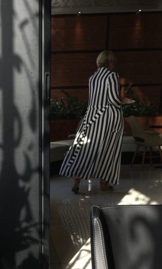 The lounge remained empty the entire time, except this fashionista who came in about an hour before I left, wearing a dress from the 2017 Trump/Putin Prison Collection. She was also fond of the little meat pies.