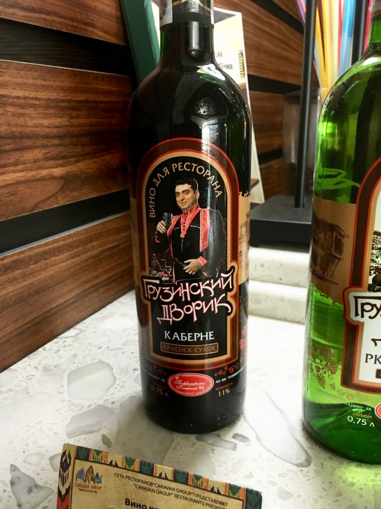With about an hour to go, I decided to ask what I might have to drink instead of Fanta. Oh, there’s wine…white or red? Both were from the “Georgian Patio” winery, and had the high endorsement of “wine for restaurants.” Hmmm, yup, tasted about as good as you’d expect. I had a second glass to make sure, however. Science.