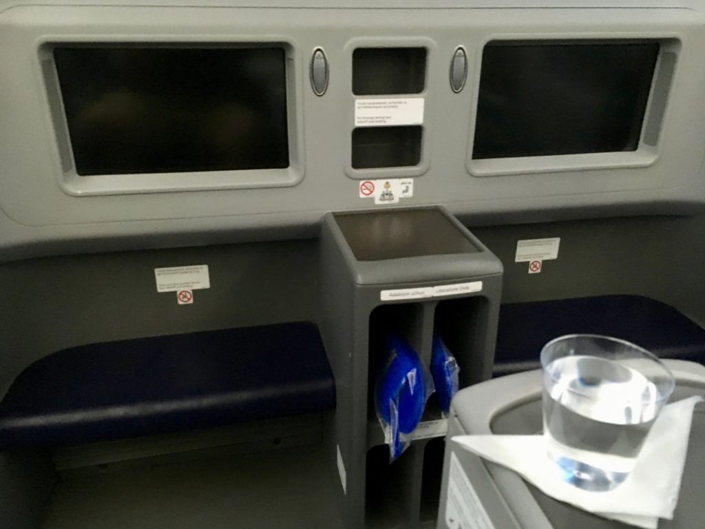 Fortunately, the turbulence, while still pretty heavy, was nowhere near as bad, and well within “ugh” limits, and we were clear of it less than 10 minutes after takeoff. That means it’s time to eat!