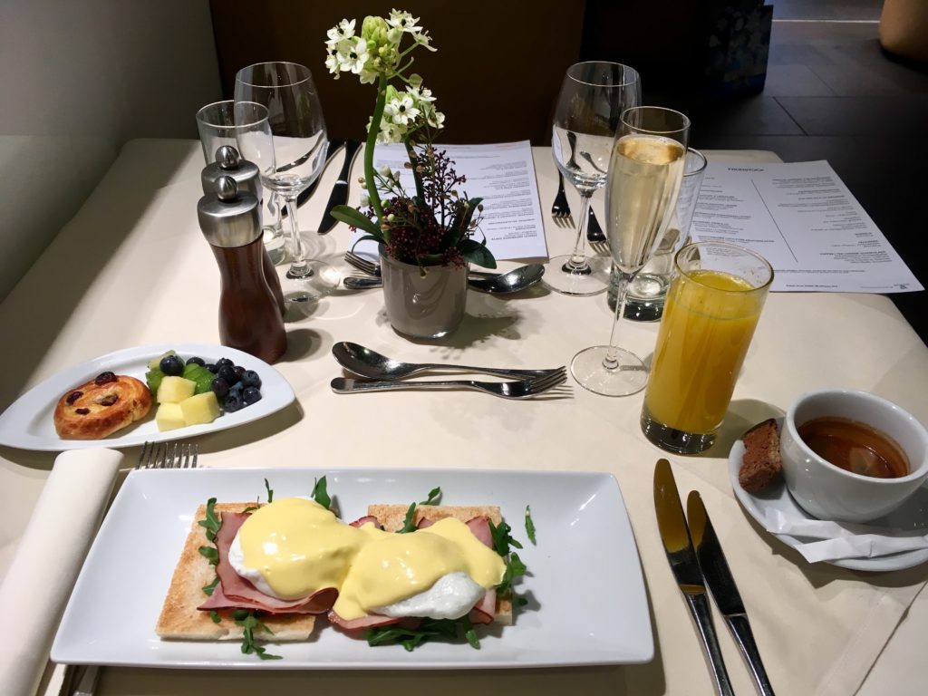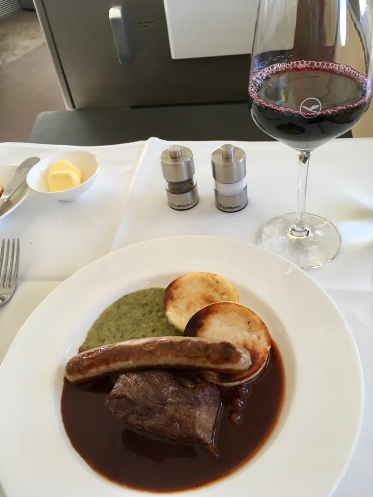 I had managed to finagle my way into an aisle seat in the second row at check-in (no business on this ancient bird!) and despite the load being about 75% today the middle seat stayed empty. Plus, I had an amazing view of the delightful old-school moving map on the bulkhead!