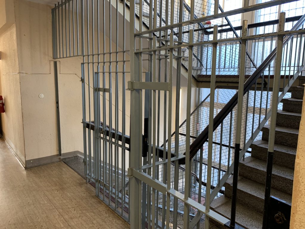 Inside the new cellblock, the door to a cell. Note the wire running over the top of the door? See how to the right of the door there is what looks like connectors? This is because guards were unarmed, and if shit went down they could loosely yank on the wire, which would pull the connectors apart, and set off an alarm. The entire complex was wired this way.