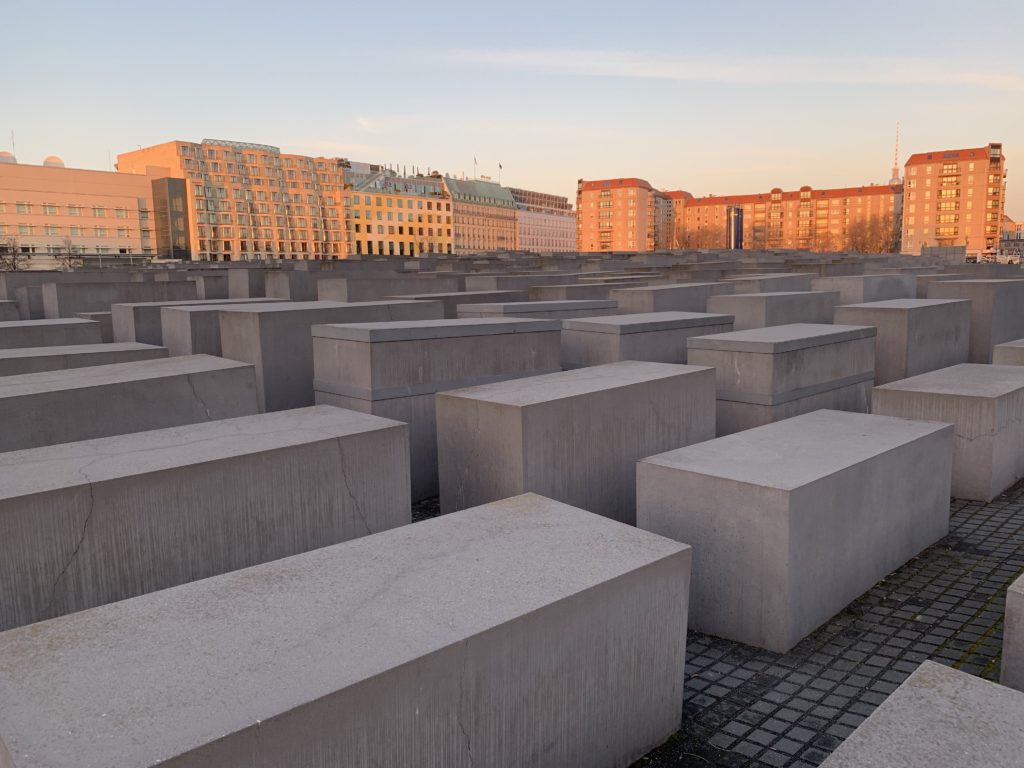 Another evening, walking back to my hotel, I stopped by the Memorial to the Murdered Jews of Europe. Very moving, lots of slabs of concrete, and catching it at sunset made it extra-reflective.