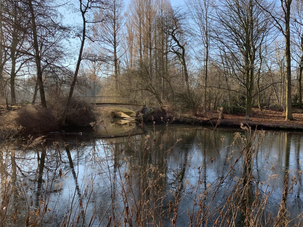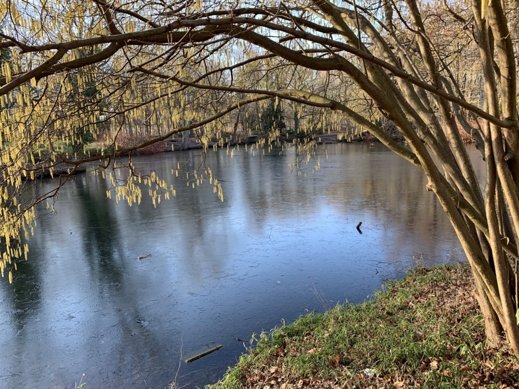 Last morning, before heading to the airport, decided to go for one final long walk through the Tiergarten. Pond partially frozen over: