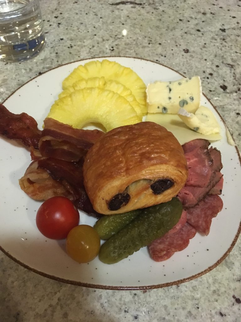 What. The. Hell. Happened. to this place in the intervening 6-7 years or so. The lounge felt only marginally above a high school cafeteria, with pretty terrible reheated frozen snacks are really terrible wine by the 1.5L bottle. I get cost-cutting, but when did this lounge go from memorable to terrible?! For comparison, this was my stay in 2013. The cake and cheese look the same, just a bit worse for wear.